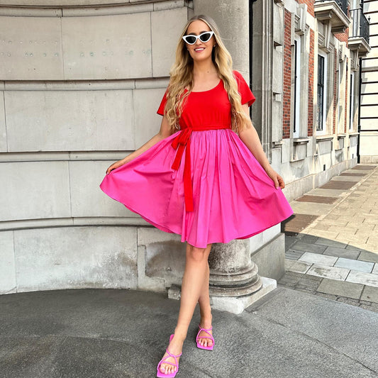 Poplin Tee Dress - Sangria/Pink Lady