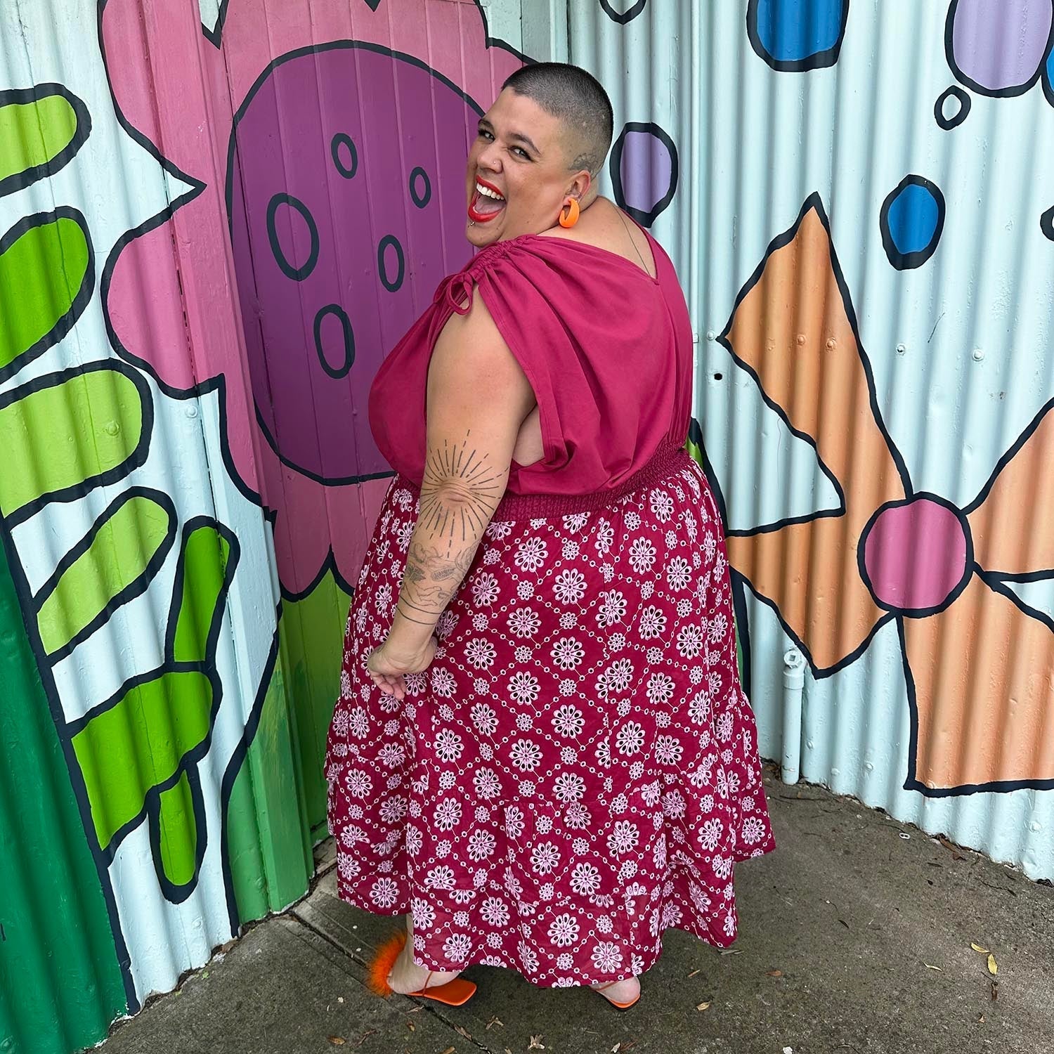 Broderie Anglaise Midi Dress - Blood Red