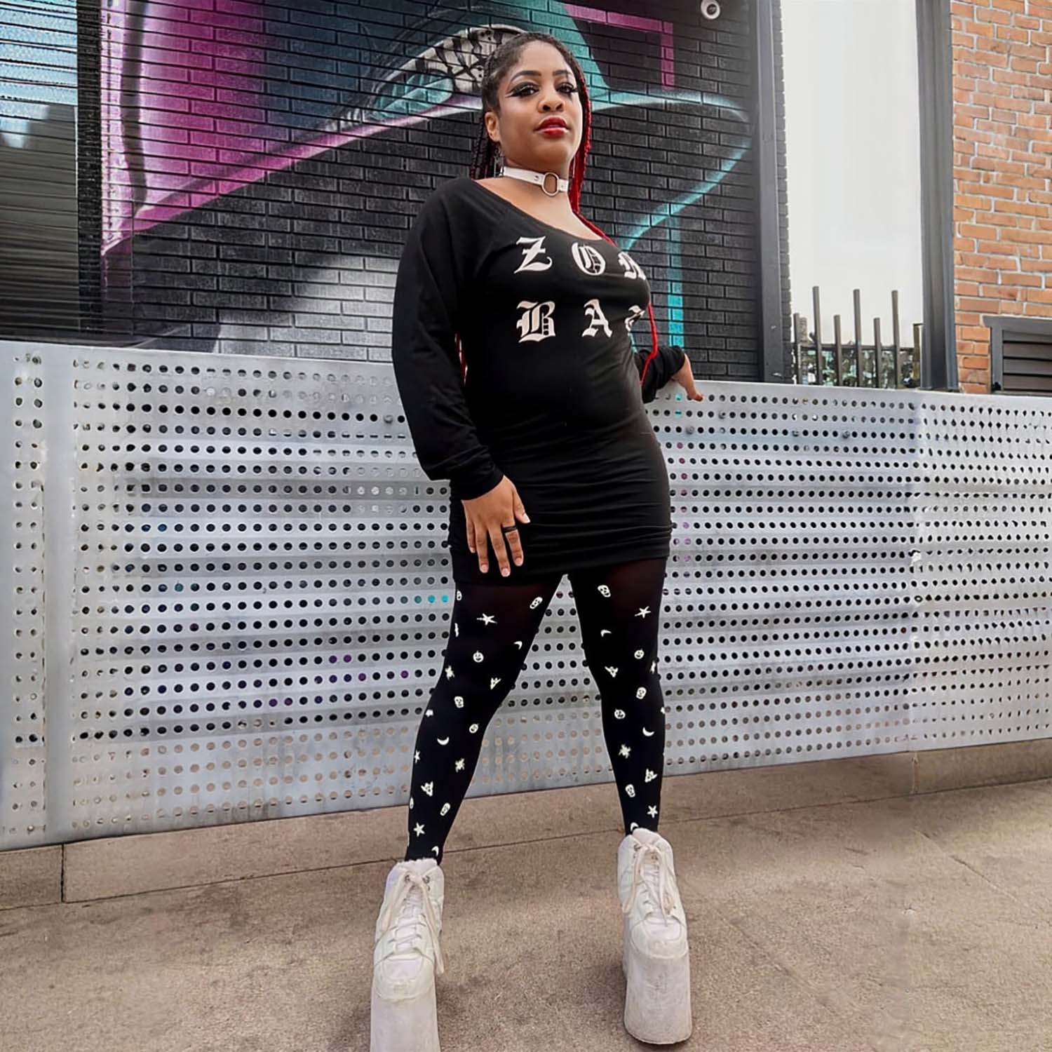 This jumper is the bomb! Sooo soft and stretchy and I love the bats and lightening. I am an F and 5ft tall (short?). Perfect length for me.
