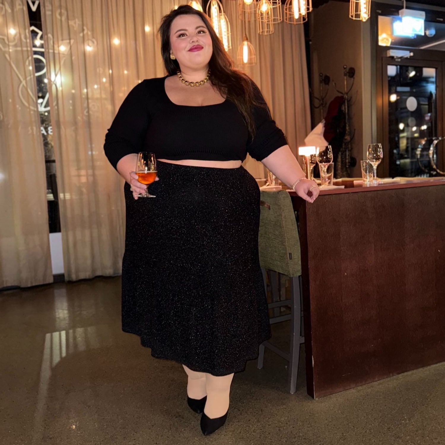 Lurex Tiered Midi Skirt - Black
